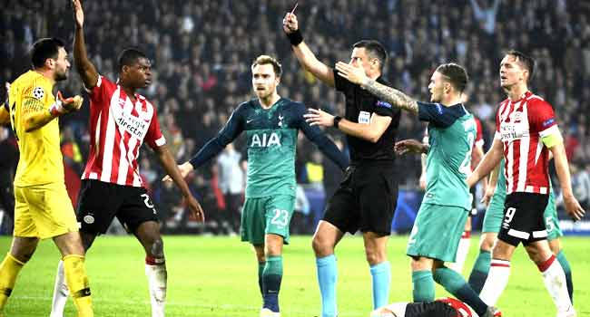 A dominant Spurs looked to have the points wrapped up after Kane nodded past Jeroen Zoet for a 55th-minute lead after Lucas Moura had equalised after Hirving Lozano’s 30th-minute opener for PSV.